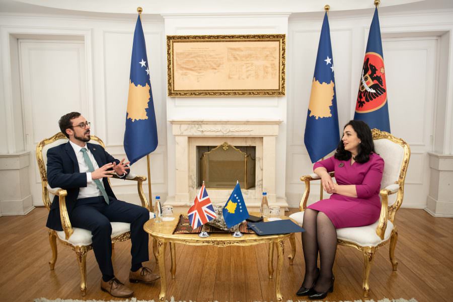 “Today, the Kosovo President, Vjosa Osmani, met separately the Ambassador of the United States of America, Jeff Hovenier, the Ambassador of Italy, Antonello De Riu, the Ambassador of France, Marie-Christine Butel, and the Charge d’Affaires of the Embassy of Great Britain Jacob Webber and Germany Jan-Axel Voss,” a press release issued by the President’s Office reads. “They discussed the latest developments in the country, the region, and the European continent, with special emphasis on coordination in foreign policy.”